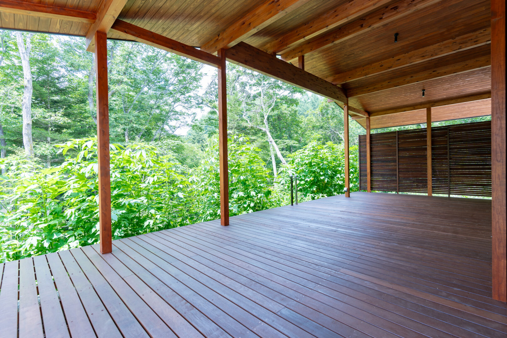 また、軒の出が深く夏の日差しをカットしてより涼しく、広いウッドデッキでは自然と調和できる空間となっています。